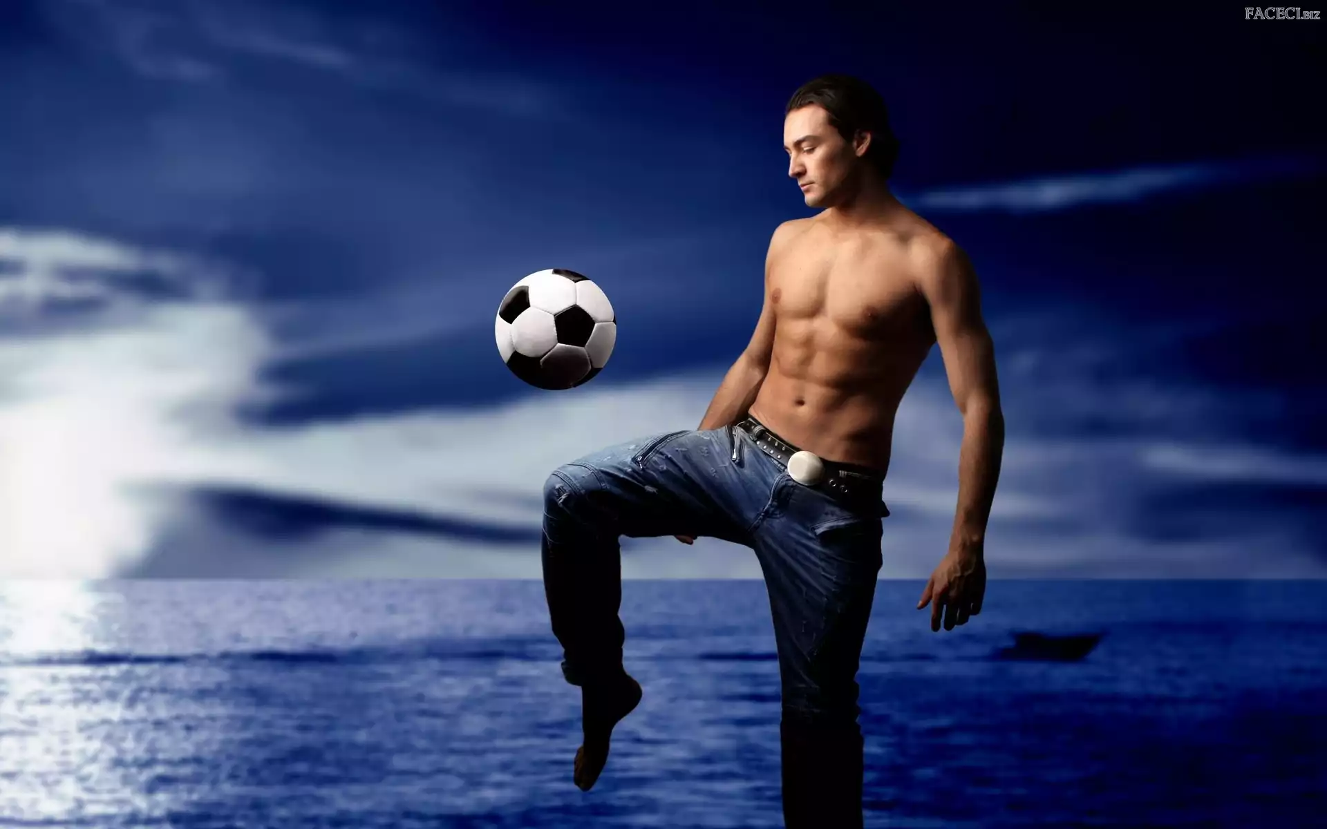 Piłka, Tors, Mężczyzna, Morze, Nagi - faceci.biz